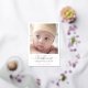 Un simple look minimalista para esta tarjeta de Relieve metalizado de oro de vacaciones. El diseño presenta una gran foto con Nuestros Navidades en Relieve metalizado de oro real. Personalizar con el nombre, fecha de nacimiento, estadísticas de nacimiento y nombres de padres en una simple tipografía gris