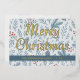 Esta tarjeta de vacaciones se distingue por su diseño único y elegante. Presenta un clásico saludo de "Feliz Navidad" impreso en Relieve metalizado de oro real, impreso en un ilustracion de un elegante patrón inglés de bayas rojas Holly y verde azuladas hojas azules. En la parte delantera de la tarjeta, hay espacio para que usted incluya su apellido y el año en curso. El reverso ofrece una excelente oportunidad para añadir un saludo o poema estacional personalizado, haciendo que su mensaje sea verdaderamente memorable. Esta tarjeta es la elección perfecta para transmitir sus deseos de vacaciones con estilo.