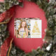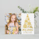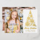 Una tarjeta de Navidades de Relieve metalizado de oro de moda con la fotografía de su familia al lado de un hermoso árbol hecho de copos de nieve dorados sobre Feliz Navidad y Feliz Año Nuevo. Personalice con una segunda foto vertical en la parte posterior de esta moderna tarjeta de vacaciones de copos de nieve.