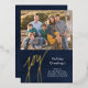 Photo greeting card with contemporary Joy in bright gold script lettering, Modern, elegant navy blue watercolor background with gold foil script text to greet your family and friends with class and sophistication this holiday season. stylish flat greeting card. Design Copyright © www.CustomChristmasPhotoCards.com Sample Image Photography © Storytree Studios, Stanford, CA