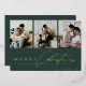 Tarjeta Festiva Con Relieve Metalizado Modern Script Photo Collage Green Merry Christmas