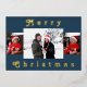 Una moderna tarjeta de Navidades mínima con tres de tus fotos familiares. La parte trasera de la tarjeta incluye una nota de personalizable personal de vacaciones y el nombre de su familia. Si prefiere que la parte posterior de la tarjeta esté en blanco, simplemente elimine la escritura de ejemplo en los 3 cuadros de texto. Un diseño sobrio y elegante, con divertidas letras retro en Relieve metalizado real sobre un bonito azul, hace que esta carta destaque.