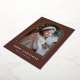 Comparta los deseos de unas cálidas vacaciones con esta moderna tarjeta de fotos navideñas que incluye tu foto vertical enmarcada en un rico arco marrón delineado con Relieve metalizado dorado. "Feliz Navidad" aparece en la correspondencia de las letras del Relieve metalizado sobre tu foto, con tu nombre de familia y el saludo de personalizado mostrado debajo en blanco. La parte trasera incluye un sencillo patrón de nieve blanca, completando este diseño acogedor y refinado para sus envíos de correo festivos.