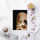 El diseño presenta Felices Fiestas en un guión de caligrafía de lámina dorada sobre un fondo negro. Personalice fácilmente sus datos personales junto con sus fotos en la parte delantera y trasera. Una hermosa tarjeta y recuerdo para familiares y amigos en esta temporada navideña.