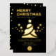 Tarjeta Festiva Con Relieve Metalizado Moderno Árbol de Navidad Oro y Negros Negocios