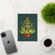 Tarjeta Festiva Con Relieve Metalizado Moderno y elegante Árbol de Navidad acuático