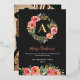 Tarjeta Festiva Con Relieve Metalizado Monogram Photo Black Botanical Wreath Christmas