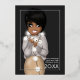 Tarjeta Festiva Con Relieve Metalizado Mujer Afroamericana Chic Navidad