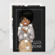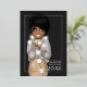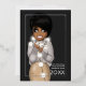 Celebra la temporada con esta tarjeta de Navidad elegante que presenta a una mujer afroamericana con estilo envuelta en luces de cadena brillantes, sobre un fondo negro elegante. Acentuada con un borde de foil real y año "20XX" personalizable disponible en oro, plata o rosa, esta tarjeta combina la elegancia moderna con el encanto festivo. Totalmente personalizable, es perfecta para enviar saludos navideños cálidos y personalizados.
