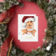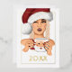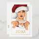 Celebre la temporada con esta elegante tarjeta de felicitación navideña que presenta a una mujer elegante que lleva un sombrero clásico de Santa y sostiene una taza festiva de Santa. Acentuado con un marco de auténtico foil dorado y un año personalizable "20XX" también en foil, este diseño añade un toque de lujo a sus deseos navideños. Perfecta para enviar felicitaciones modernas y personalizadas a amigos y familiares durante las fiestas.
