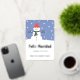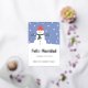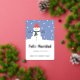 Tarjeta de felicitación de fiestas españolas con ilustración moderna de muñeco de nieve invernal. Texto personalizable