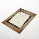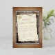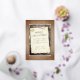 Tarjeta de vacaciones de Navidad con letra de papel pergamino viejo de madera rústica. Una escena rústica con madera y papel de pergamino viejo con una letra en el papel en lámina de oro rosa real - personalice el texto con su texto.