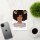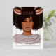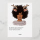 Difunde alegría festiva con esta tarjeta de vacaciones moderna que presenta a una mujer africana americana elegante que lleva cuernos de reno y un suéter acogedor. Con su diseño juguetón y elegante y el detalle del año personalizable, esta tarjeta es perfecta para enviar saludos navideños elegantes y únicos. Ideal para celebrar la temporada con personalidad y estilo.