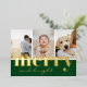 Tarjeta Festiva Con Relieve Metalizado Navidad Estilo Verde Brillante Tres Fotos