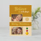 Verdadera tarjeta de vacaciones de Relieve metalizado. Feliz Navidad. Agrega tu foto y nombres, o tu apellido en la parte de atrás. Cree en la magia. 'Todo lo mejor para el Año Nuevo' está en la parte trasera de la tarjeta. Diseñado en oro claro y oscuro con baudias y estrellas doradas.
