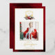 Este elegante y formal, aunque festivo diseño, presenta un clásico escudo floral de Relieve metalizado dorado a mano acentuado por un colorido rociado de flores y verduras de Navidades rojos y blancos. Esta plantilla de personalizado incluye campos de texto editables y plantillas de fotografía, así como gráficos de texto de caligrafía personalizado y un fondo de gradiente rojo de lujo.