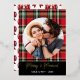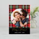 Celebra la temporada de amor con esta elegante tarjeta de vacaciones para Navidades! La parte delantera cuenta con un fondo atemporal rojo, verde y negro plateado, enmarcando un círculo en el centro con espacio para una foto de la pareja feliz. La frase "Merry & Married" se exhibe de forma hermosa en un lujoso guión de Relieve metalizado dorado dentro de una elegante caja negra, añadiendo un toque de brillo de vacaciones. Personalízalo con los nombres de la pareja y el año en curso por un toque festivo y memorable. En la parte trasera, un original patrón de arcos de coqueta en rojo, dorado y blanco añade un final alegre y encantador a este perfecto descanso vacacional.