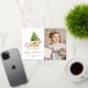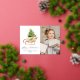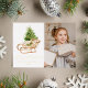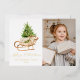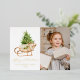 Sencilla, pero elegante, tarjeta de festividad fotográfica con un trineo acuático lleno de un árbol de Navidad y regalos. Debajo se muestra "Feliz Navidad" en un hermoso guión de Relieve metalizado dorado. Personalice la parte delantera de la tarjeta agregando su nombre, el año y una foto. La tarjeta se invierte para mostrar el mensaje de su personalizado con un fondo verde sabio.