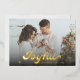 Tarjeta de vacaciones de Relieve metalizado para Navidades de foto retro alegre y moderna con copas de nieve