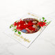 Una hermosa poinsettia roja floral con hojas huecas rodea tu linda foto familiar sobre Feliz Navidad. Niños luminosos y alegres fotografían tarjetas de vacaciones de Relieve metalizado dorado con flores de bonito y hojas alrededor de la foto cuadrada.
