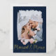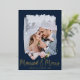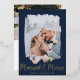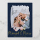 Celebra tu primera temporada de vacaciones junto con esta elegante tarjeta de fotos de Navidad, que incluye caligrafía moderna en Relieve metalizado de oro real que dice "Casado y Feliz". El diseño incluye un marco pintado artístico para tu boda favorito o una foto de compromiso en la parte delantera, con una plantilla de foto adicional y texto de personalizable al revés para tu mensaje de vacaciones. Una elección refinada y romántica, esta tarjeta Navidad personalizada es perfecta para recién casados, parejas o como una invitación única de vacaciones boda.