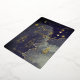 Navidades de pinos con guijarros elegantes y brillantes con tarjeta de vacaciones Relieve metalizado personalizada | Tarjetas navideñas de merry Personalizado acuarela única | Incluye el texto de caligrafía de escritura cepillado "Merry + Bright" y doodles de pinos en el cielo estrellado azul real.