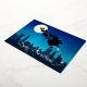 Ilustracion Sleigh de Santa: Un paseo en la noche por el horizonte de una ciudad con el cielo nocturno y la luna brillante y las estrellas en el fondo.