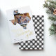 ¡Feliz Navidad, todos! Esta linda tarjeta de vacaciones de Texas contiene el dicho en la leyenda del Relieve metalizado de oro caprichoso grabado debajo de una silueta del estado de Texas, sosteniendo cuatro de tus fotos favoritas. Personalice el saludo de su personalizado y los nombres que aparecen en la parte inferior. Las tarjetas cambian a un patrón de manto de búfalo blanco y negro pintado a mano.