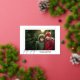 Un aspecto moderno para una tarjeta fotográfica de vacaciones. Una palabra de Relieve metalizado dorado - alegría - está encima de la foto y saludo de feriado. Añade una foto horizontal y un nombre de familia a esta tarjeta de fotos de Navidad. Incluso puedes cambiar el saludo de los Navidades a otro dicho. El diseño de la parte trasera incluye un patrón de Navidades enchapado en rojo y verde alegre para un aspecto clásico.