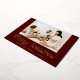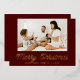 Simple Script Calligraphy Family Photo Navidades Relieve metalizado tarjeta de vacaciones en el fondo rojo oscuro, escritura de Relieve metalizado dorada caligrafía y un mensaje editable en la parte posterior. (Créditos de la foto a Jonathan Borba de Unsplash. Por favor, reemplácelo por el suyo propio. )