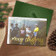 DISEÑO FRONTAL: Un saludo de Relieve metalizado dorado - feliz Navidad - está encima de la foto en un gran y moderno tipo de letra de guión. La foto está fuera del centro, y la firma familiar envuelve el borde blanco. También se incluye un acento de borde dorado. — DISEÑO ATRÁS: El diseño trasero incluye un arco de arte retro de la línea MCM en tonos verde oliva. Los colores se pueden cambiar en el área de diseño avanzado.