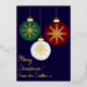 Tarjeta Festiva Con Relieve Metalizado Navidades verdes rojos blancos baubles con copo de