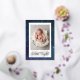Un simple pero elegante overlay de caligrafía de "Noche de Paz" con lámina de oro y borde coincidente sobre su fotografía favorita de su bebé con un fondo texturizado de acuarela azul inspirado en el invierno. La información se puede editar seleccionando "personalizar esta plantilla". Este diseño es perfecto para compartir la foto de su recién nacido durante la temporada de Navidad. Si tiene alguna pregunta o solicitud con respecto a este diseño, no dude en hacérselo saber a través del chat.