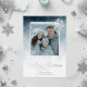 Envíe sus cálidos deseos esta temporada navideña con nuestra elegante tarjeta de Navidades de fotos sombría de nevadas. Este impresionante diseño presenta un hermoso fondo degradado, pasando de un azul intenso de invierno a un blanco suave y helado, acentuado por la caída delicada de la nieve. Su preciada foto familiar ocupa el centro del escenario dentro de un marco de Relieve metalizado plateado y fresco, flanqueado por sofisticados copos de nieve trenzados en plata. El clásico guión de "Feliz Navidad" añade un toque de encanto intemporal. Personaliza fácilmente con el nombre y la foto de tu familia para un mensaje de vacaciones verdaderamente único y memorable. Perfecto para familias, parejas o cualquier persona que celebre las vacaciones de invierno. Creado por Simply Farmhouse Press.