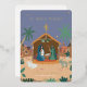 Escena de la Natividad en Belén Ilustración de Navidad diseñada por Shelby Allison que se puede personalizar con su saludo de vacaciones,