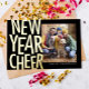 Envía alegría de año nuevo con esta divertida y única tarjeta de Año Nuevo. Con su estilo lúdico en Relieve metalizado dorado y sus antecedentes confetti, es la manera perfecta de desear a amigos y familiares un feliz año nuevo. La única foto es un poco vertical y acomoda una variedad de fotos. El texto personalizado tiene espacio para un mensaje corto y nombres familiares. La parte trasera está en la coordinación de los colores dorados del confetti. Esta tarjeta de Feliz Año Nuevo es perfecta para sus vacaciones de este año!