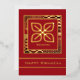 Una carta elegante y moderna de Kwanzaa que presenta el poderoso símbolo de Nsirewa, que representa riqueza, abundancia y prosperidad. El símbolo dorado delineado se coloca sobre un fondo rojo rico y está enmarcado por un borde dorado pulido con un patrón Kente sutil y texturado. Este sofisticado diseño encarna los principios de Ujamaa (Economía cooperativa), ofreciendo una manera contemporánea y significativa de celebrar la festividad.