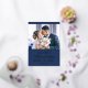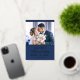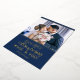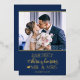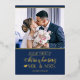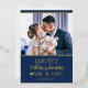 Celebra tu primera Navidad casada como Sr. y Sra. con esta linda tarjeta de vacaciones con una plantilla de fotos de personalizable y una encantadora leyenda con fuentes de moda de Relieve metalizado oro real sobre un fondo azul festivo.