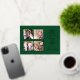Hermosa y sencillamente elegante tarjeta de saludo familiar de cuatro fotos "Oh Ven, Adoremosle" con texto y acentos de lámina metálica real. Personaliza simplemente con tus fotos, un mensaje único o utiliza el "Deseándote una Navidad bendita" que te proporcionamos, añade el nombre de tu familia y el año. Diseño por Holiday Hearts Designs (derechos reservados) con fotografía © Storytree Studios, Stanford, CA.