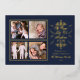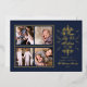 Hermoso y sencillamente elegante "Oh Venid Adoremosle" saludo familiar de cuatro fotos con texto y acentos de auténtico foil. Simplemente personalice con sus fotos, un mensaje único o use el "Deseándole una Navidad bendita" que proporcionamos, agregue el nombre de su familia y el año. Diseño por Holiday Hearts Designs (derechos reservados) con Fotografía © Storytree Studios, Stanford, CA.