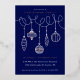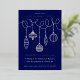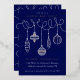 Ornamentos colgantes con diseño oprimido sobre fondo oscuro. Una tarjeta de moda especialmente apta para las invitaciones de las partes que cooperan en las vacaciones.