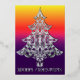 The front of this luxurious Real Silver Foil Christmas Card features an exquisite stylized Christmas tree rendered in a rich, ornamental filigree pattern. Every swirl, curve, and leaf is brought to life with genuine silver foil, creating a luminous interplay of light that catches the eye from every angle. The design stands against a happy yellow to purple gradient background, a color transition that evokes joy and festive celebrations.