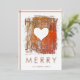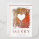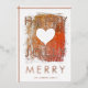 Tarjeta de vacaciones de Relieve metalizado dorado para Navidades de pintura cardíaca artística de merry Jolly. Corazón pintado en colores naranja y rojo con alegre, alegre, alegre en Relieve metalizado dorado. Añade el nombre y el mensaje de tu familia al revés.