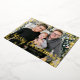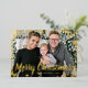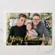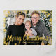 Tarjeta de vacaciones de Relieve metalizado dorado de nieve. Esta elegante postal de Relieve metalizado dorado "Feliz Navidad" presenta un marco festivo superpuesto de auténticos copos de nieve de Relieve metalizado dorado con texto de Relieve metalizado dorado y escritura para personalizar sobre una foto de la familia de personalizables. La parte posterior incluye un mensaje para personalizar sobre un fondo verde del bosque. Buscar elementos coincidentes en la colección de copos de nieve de vacaciones de Navidades.