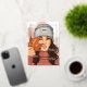 Bienvenido la temporada de otoño con esta tarjeta elegante que presenta a una mujer de moda con un suéter de cuello alto y gorro acogedores, sosteniendo juguetonamente una hoja de arce naranja. El marco minimalista y el año "20XX" personalizable agregan un toque moderno y personal. Perfecto para enviar saludos cálidos de temporada o deseos de Acción de Gracias con estilo.
