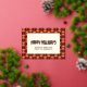 Tarjeta Festiva Con Relieve Metalizado Patrón de vacaciones felices a mediados de siglo