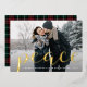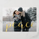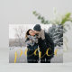 Una simple y elegante tarjeta fotográfica de vacaciones permite que tu foto favorita ocupe el centro del escenario. El diseño de la moda presenta una foto horizontal o orientada al paisaje de sangrado completo, con "paz" colocada en letras de guiones de Relieve metalizado dorado. Personaliza con tu nombre o apellido, y el año. La carta se revierte a un patrón inverso de arenilla de tartán rojo y verde.