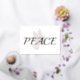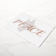 Esta tarjeta de Navidad presenta la palabra “PAZ” en hoja de rosa dorado sobre una paloma (arte digital original de Dogwood and Thistle), y un mensaje personalizado en el interior con una despedida personalizada.