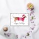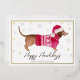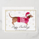 Envía sonrisas esta temporada con esta adorable tarjeta de vacaciones de papel de oro de Porch and Gable Design. Con un dachshund de acuarela vestido con un suéter rojo acogedor y un sombrero de Santa, este diseño festivo es perfecto para cualquiera que ame a su perro caliente o simplemente aprecie un poco de alegría navideña. La tarjeta muestra un elegante marco interior de papel de oro, que agrega un toque de brillo y sofisticación.