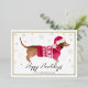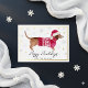 Tarjeta Festiva Con Relieve Metalizado Perro Dachshund de Acuarela Felices Fiestas Blanca